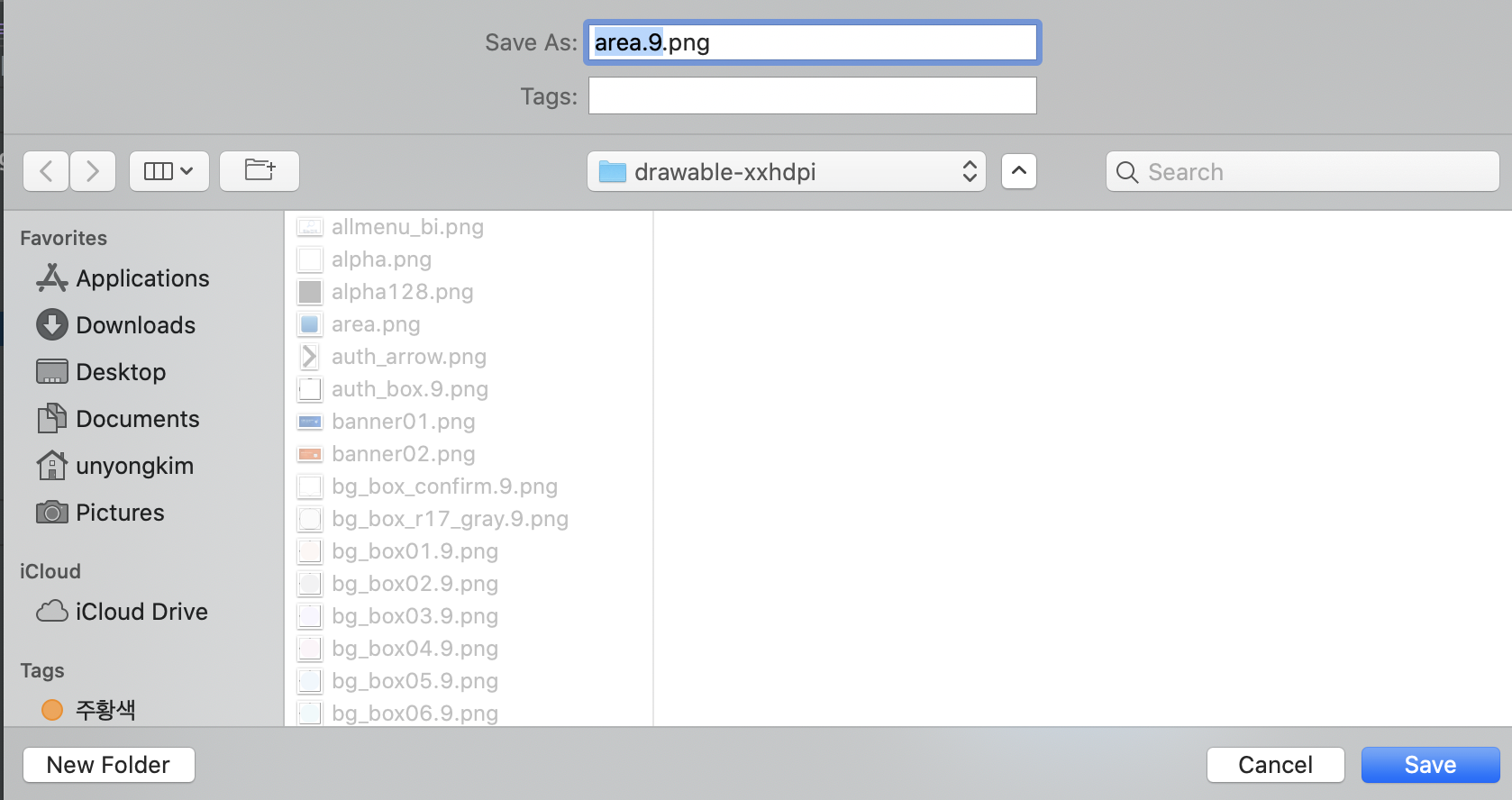 그렇게 되면, 아래처럼 자동으로 .9.png 확장자가 생성됩니다.