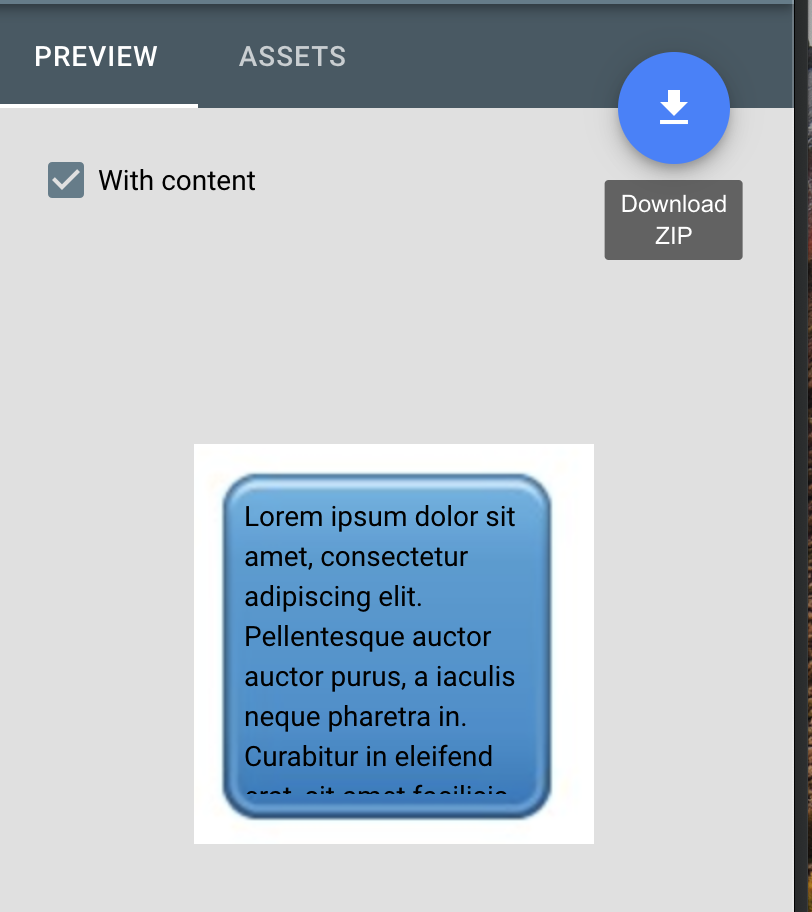 작업이 완료되었으면, 'Download ZIP' 아이콘을 클릭하면, drawable 디렉토리 안에 해상도 별(mdpi/hdpi/xhdpi/xxhdpi/xxxhdpi)로 구분된 파일을 한꺼번에 다운로드 받을 수 있습니다.