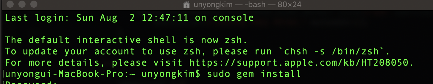 명령어부터 매우 간단합니다. 맥을 사용하고 있으시다면, 터미널 창을 띄운 후에